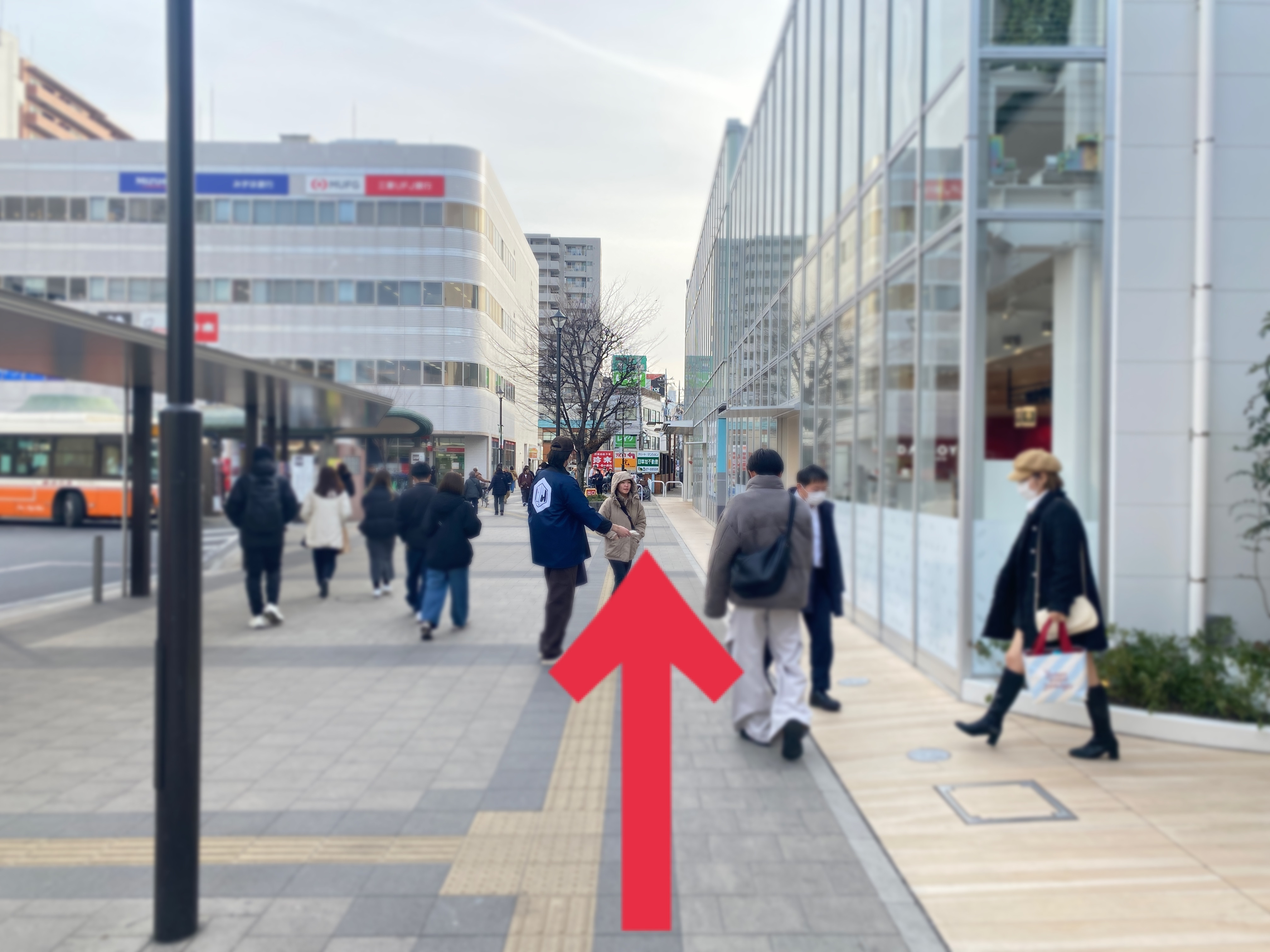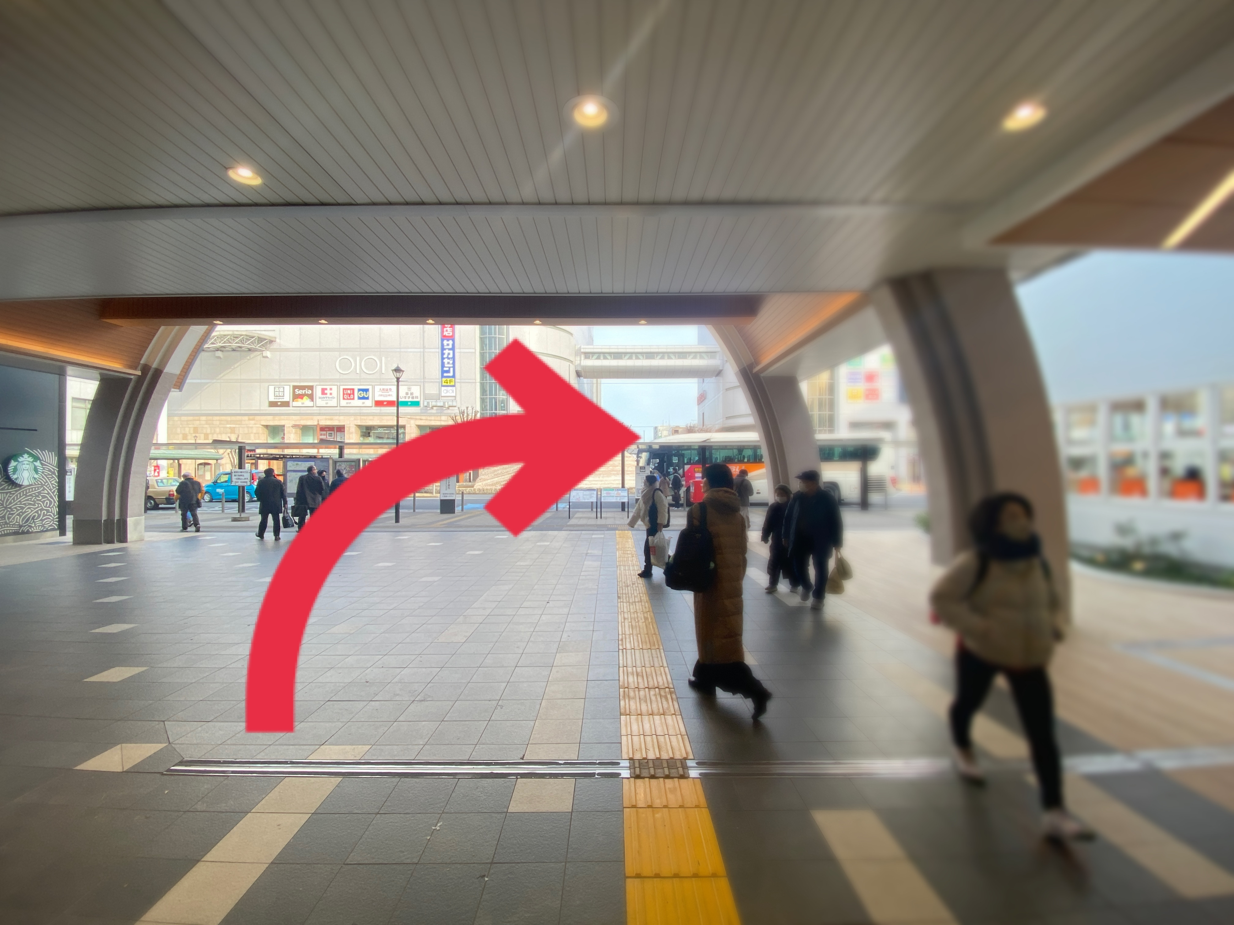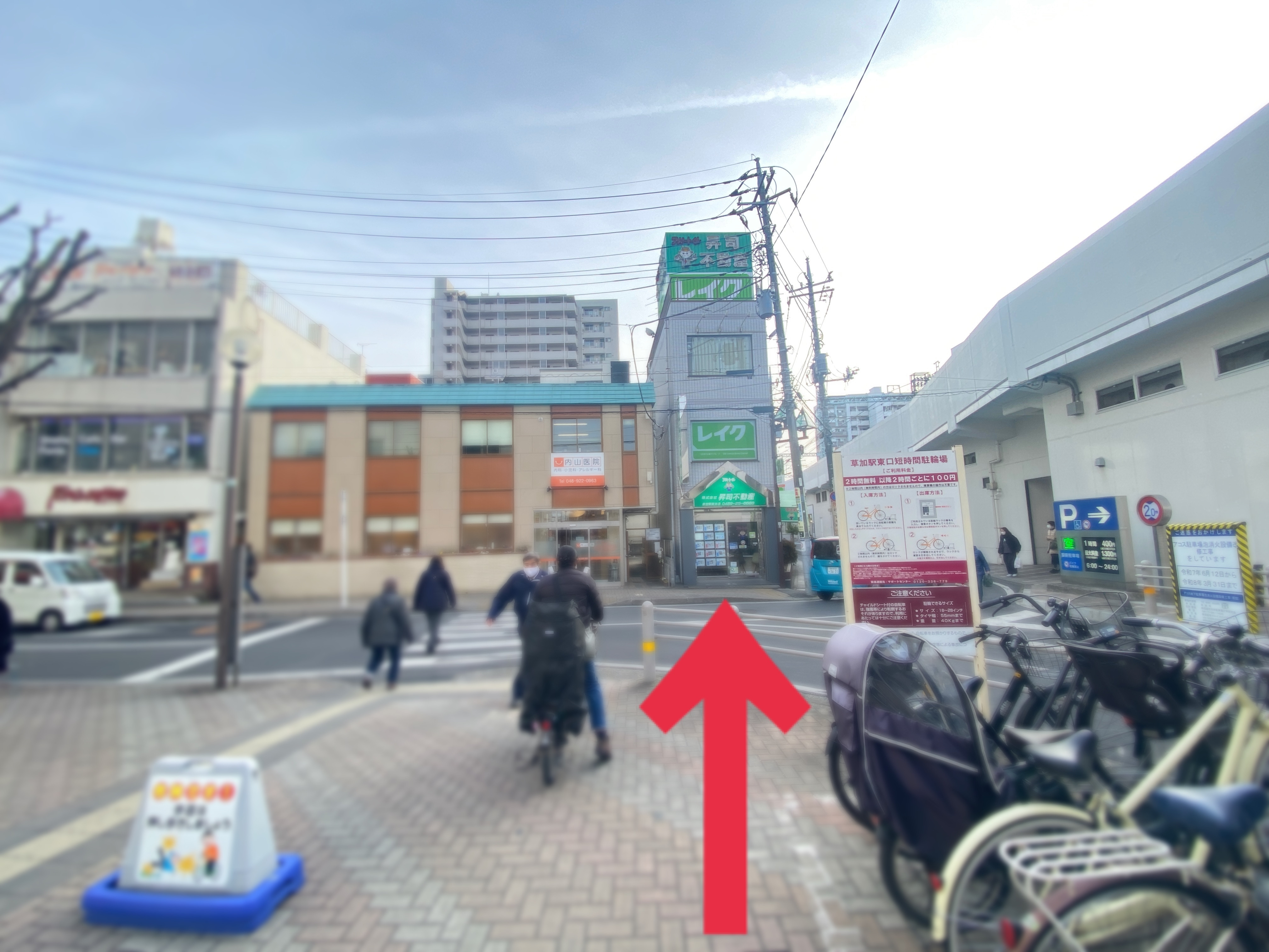 【1】草加駅中央改札を出て、東口方面へ右折。