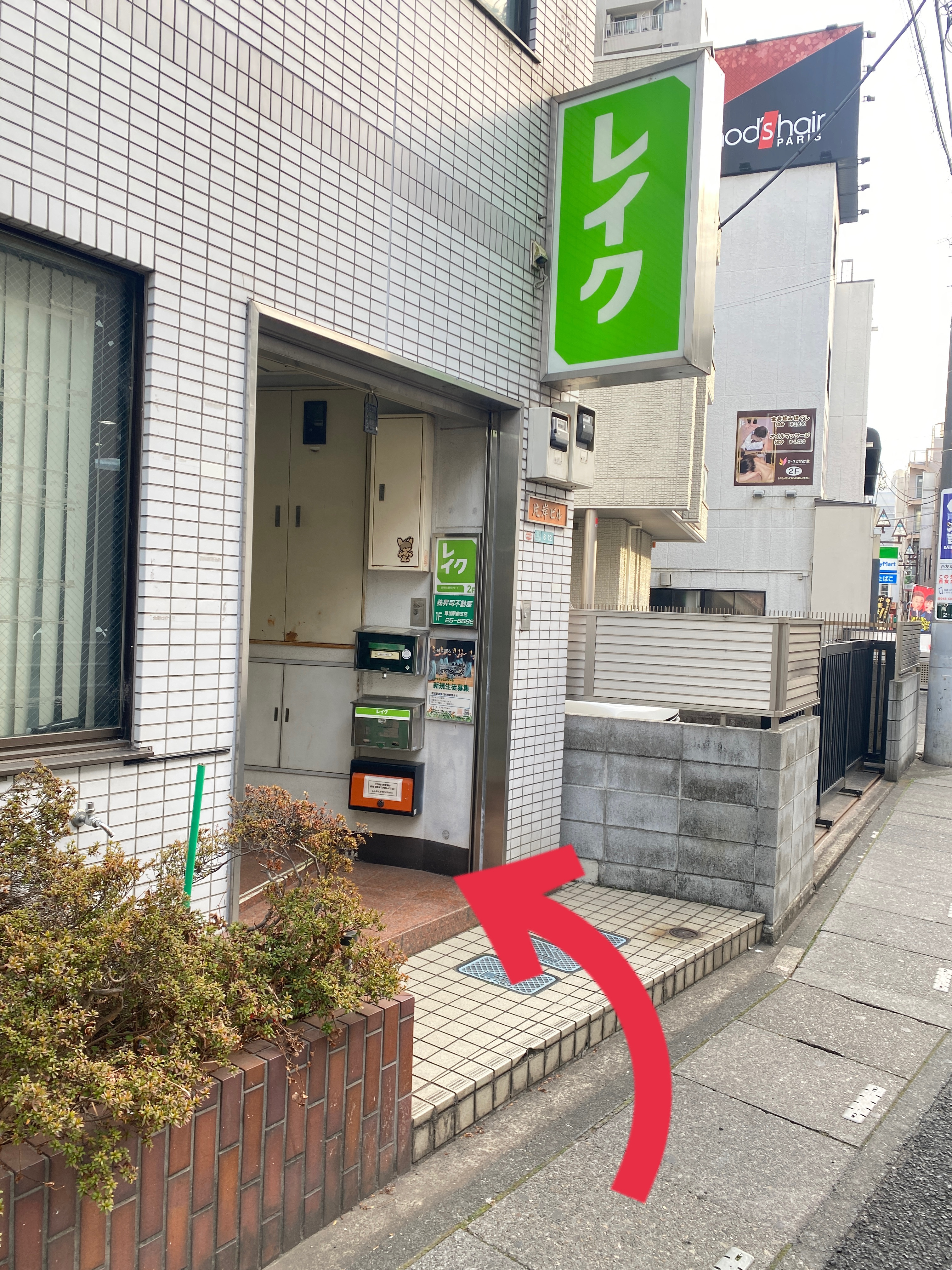 【4】左手に「レイク」の看板があるビルの3階がStudio Piattoです。